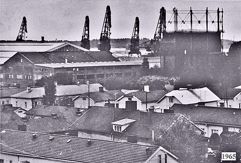 Kaasutehtaankujalta alueelle 1973. Pallon oikealla puolella