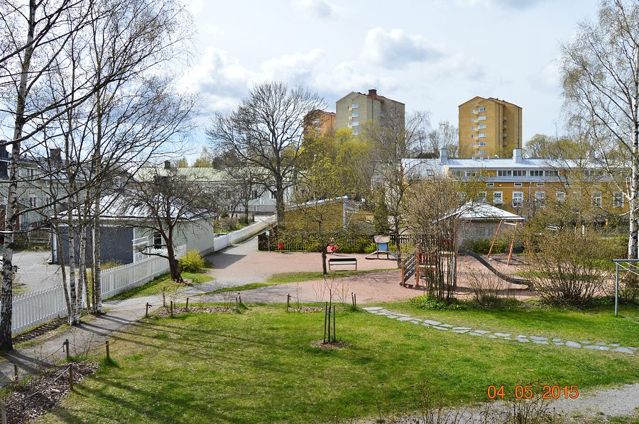 ![]() Stålarminkatu 23 pihapiiriä Tervahovinkadulta kuvattuna. |