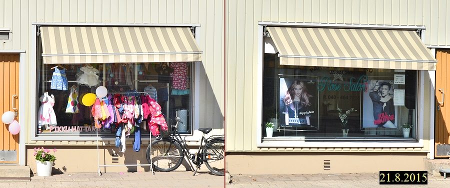 ![]() Stålarminkatu 15 Kampaamon nimi muuttunut ja vasemmalla uusi liike. |