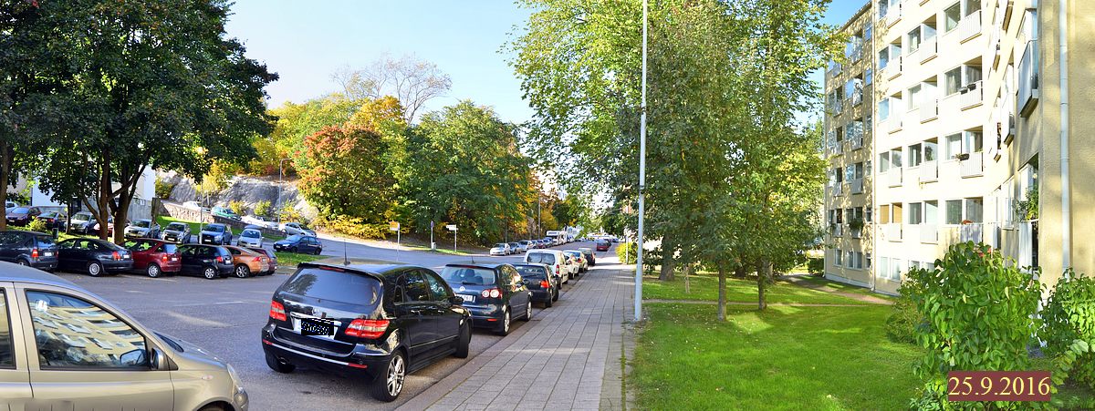 ![]() Mäntymäenaukio 1. Vuorityömiehenkadun kulmaus. |