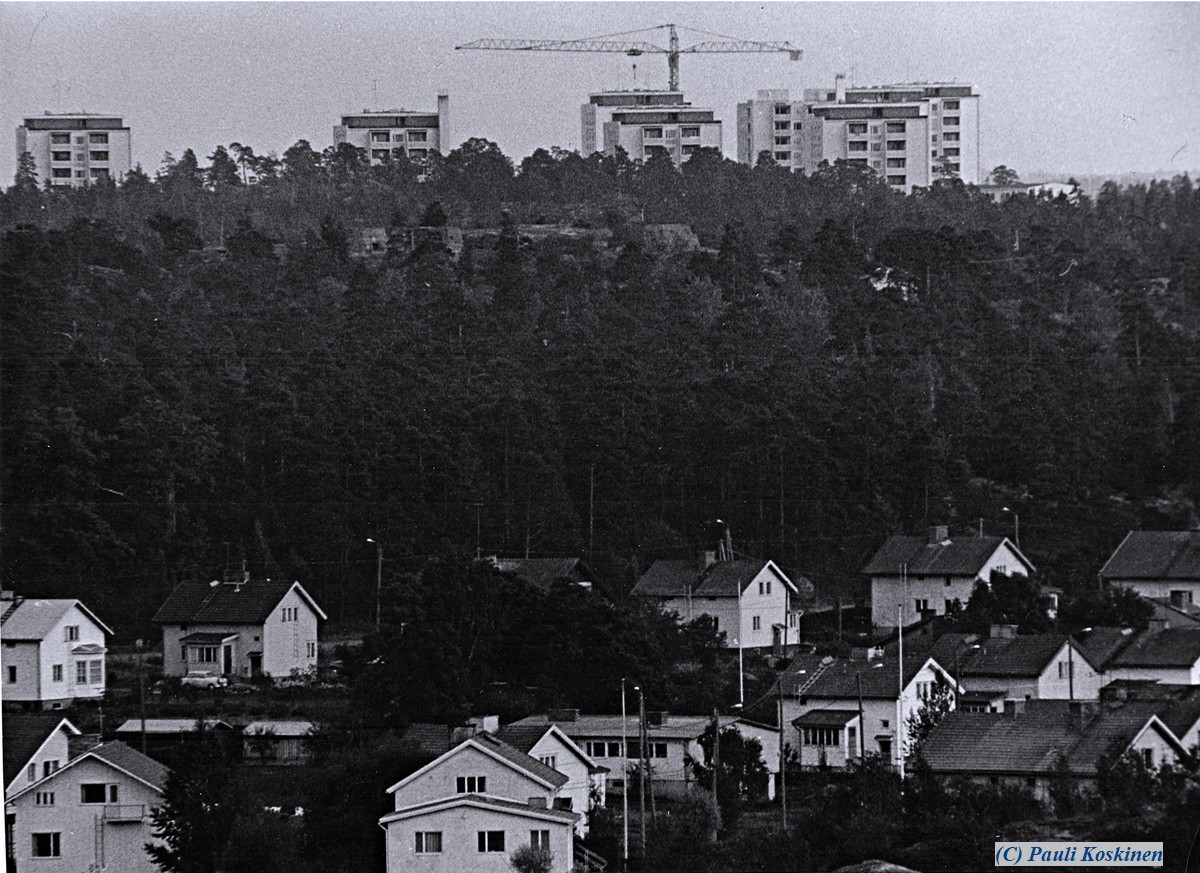 Tonttulinnasta telellä kuvattu. Etualalla Pajamäkeä ja taustalla Liisantien kerrostaloja. Katso osakuvaa alla! |