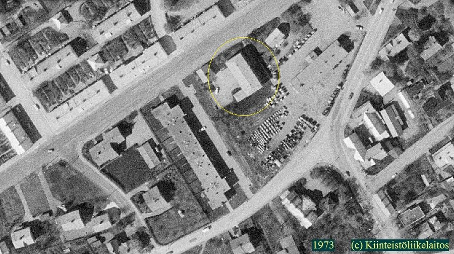 ![]() Tässä ilmakuvassa vuodelta 1973 puhelinkeskus näkyy alkuperäisessä asussaan. |